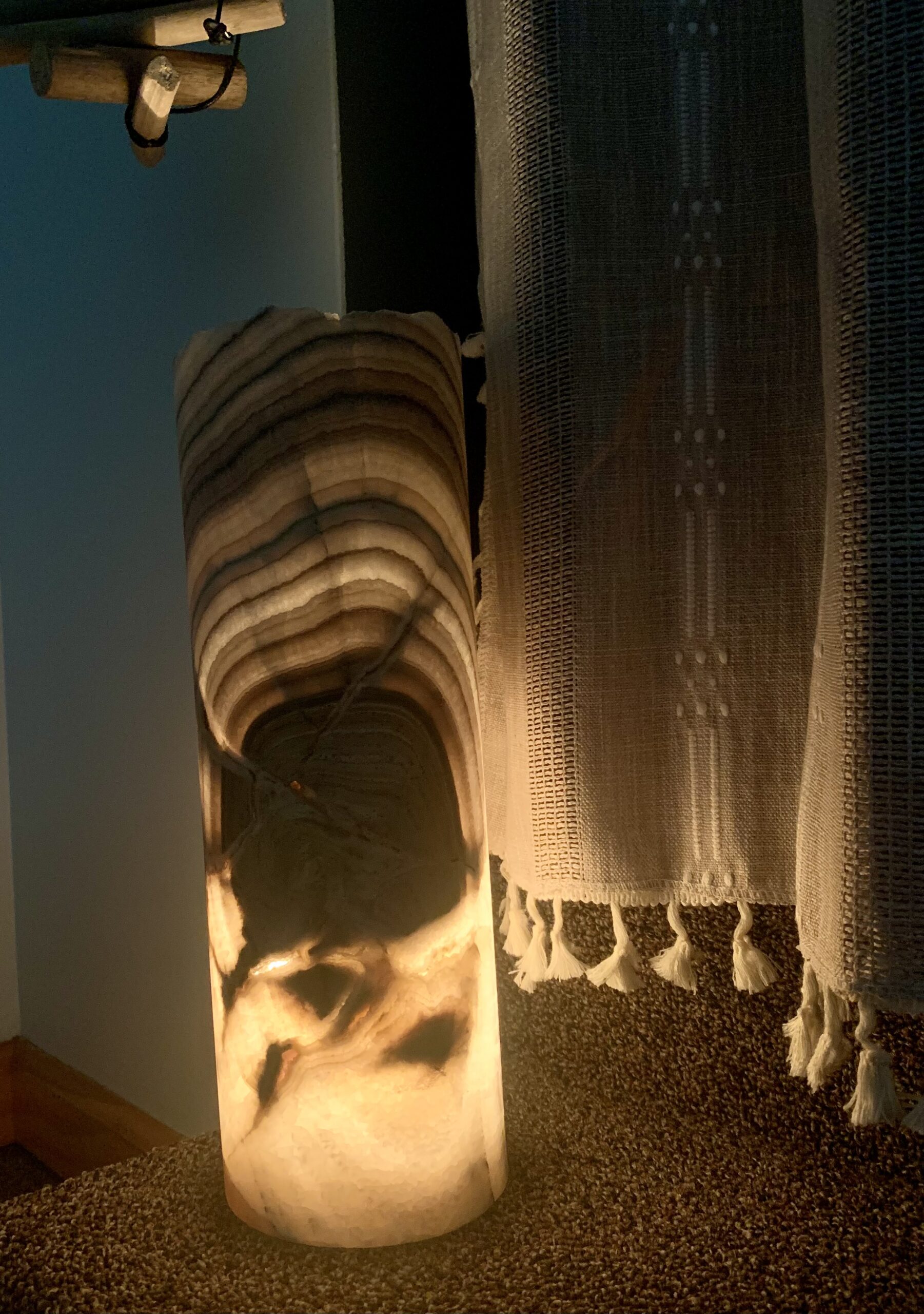 Qty 1) Golden Onyx Lamp – “Birch”- Elevate your space with the refined elegance of our Onyx Lamps, a striking union of nature’s artistry and masterful craftsmanship. Hand-carved from authentic Mexican Golden onyx stone, each lamp showcases rich earth tones and intricate veining—no two pieces are ever alike. This ensures a true original, collectible piece that cannot be replicated. $130