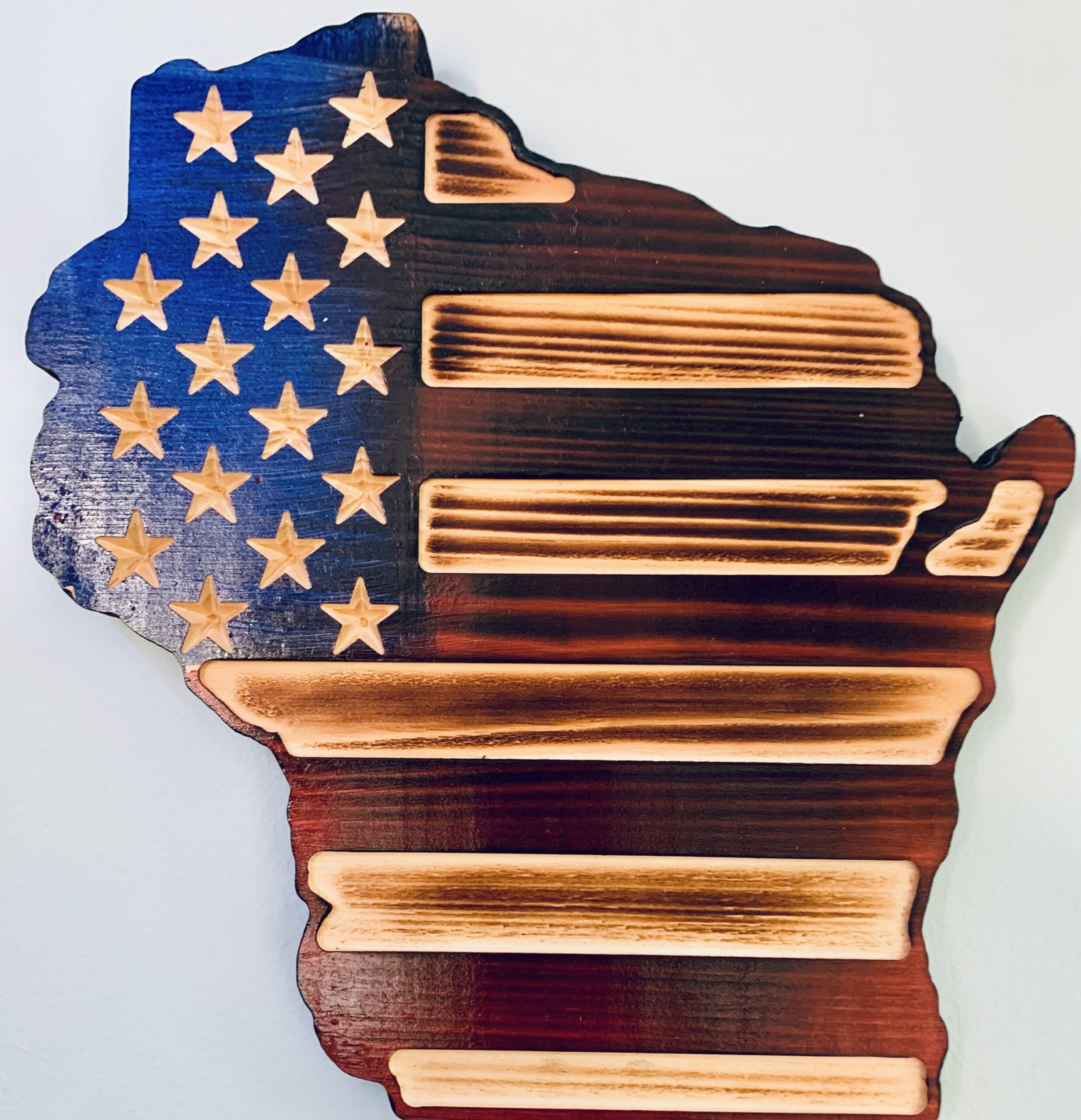 Wisco- Our Wisconsin Handcrafted Patriotic Wall Plaque